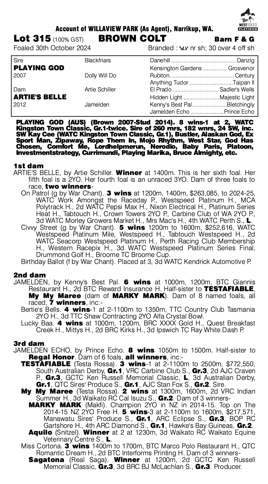 The number one rated horse in the entire Perth Magic Millions Yearling Sale on Pedigrees360, this colt is the clear standout of the catalogue.